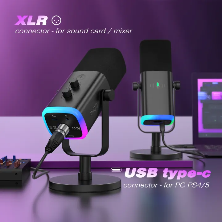 FIFINE Ampligame AM8 USB/XLR Dynamic Microphone for Podcast Recording Singing Streaming Gaming Mic with Touch Mute Button,Headphone jack,for PC PS5/4 mixer